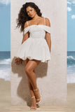 Capture that peaceful holiday feel in our latest aptly-named mini Blissfully. Arriving in a light floaty cotton poplin this white mini dress showcases a bardot neckline with detachable straps for a custom fit. With a cinched waist and puffball skirt Blissfully creates and elegant feminine silhouette perfect for a relaxing day in the sun.