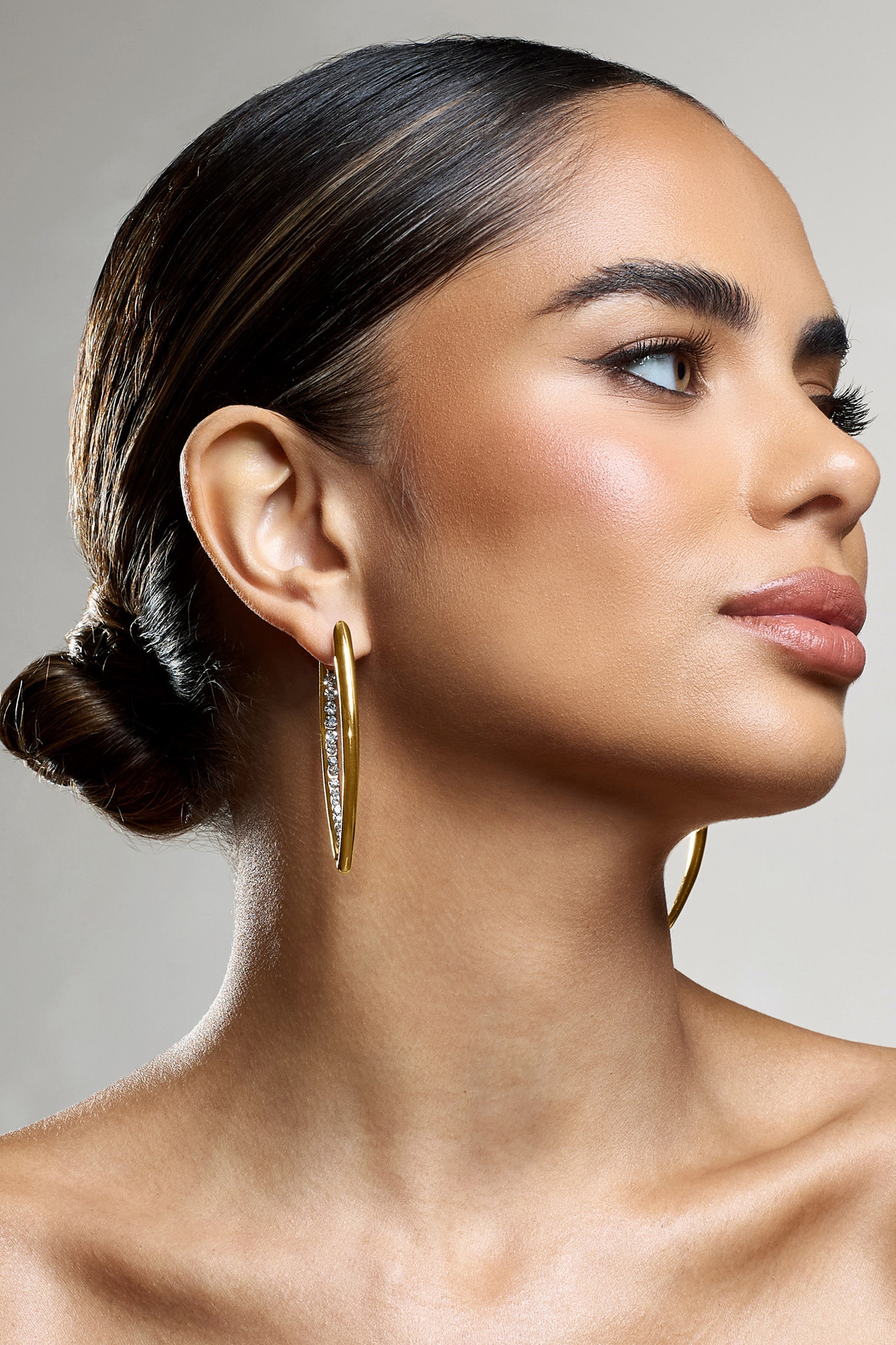 Our aptly-named gold earrings are the perfect way to effortlessly elevate any ensemble. Effortless have been crafted in an abstract hoop shape with subtle light-catching crystals.