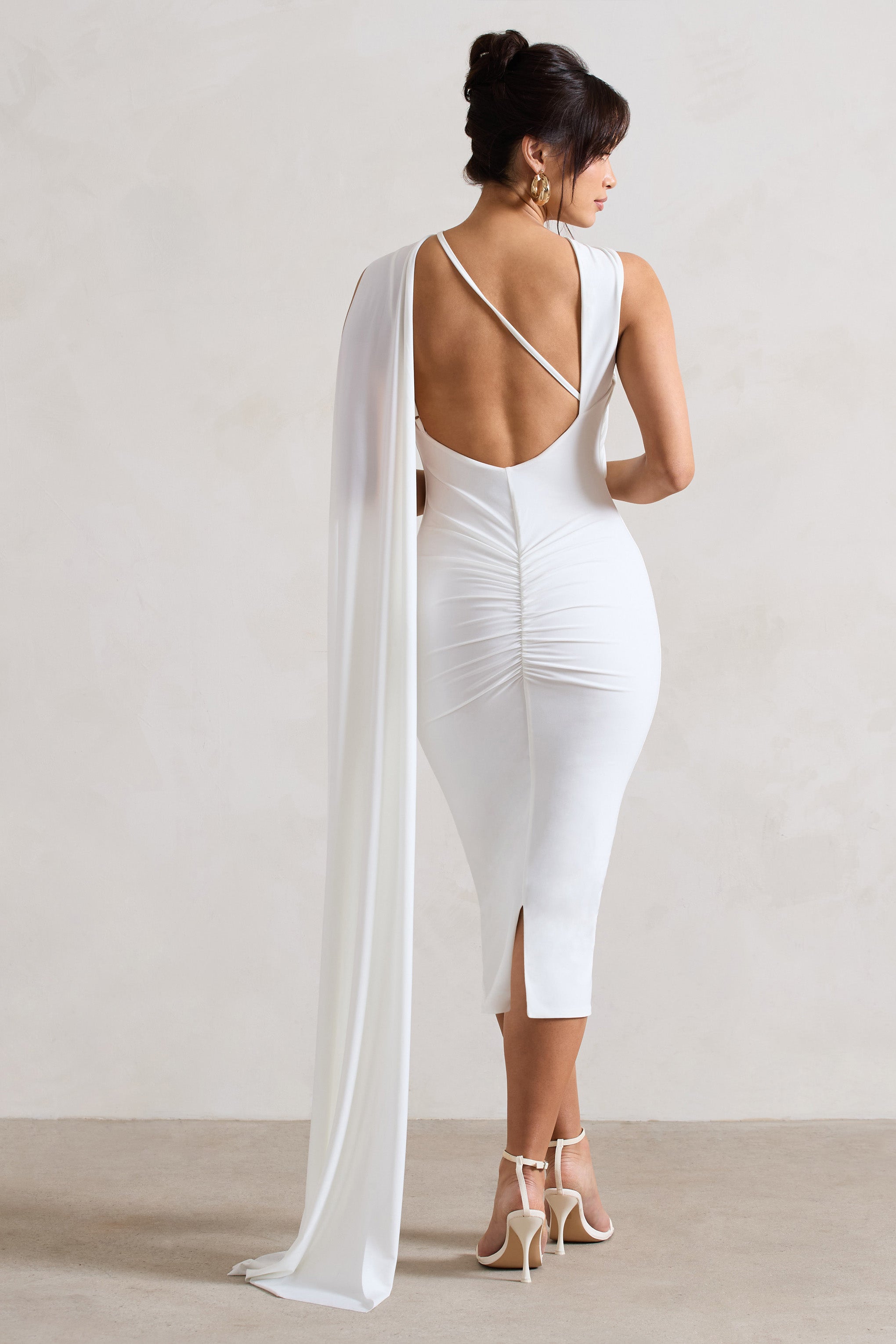 Freedom White Strappy Asymmetric Cut-Out Midi Dress With Cape