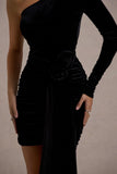 Saint Moritz Black Velvet One Sleeve Mini Dress With Flower Drape