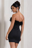 Stop The Show Black Feather Trim Bandeau Mini Dress
